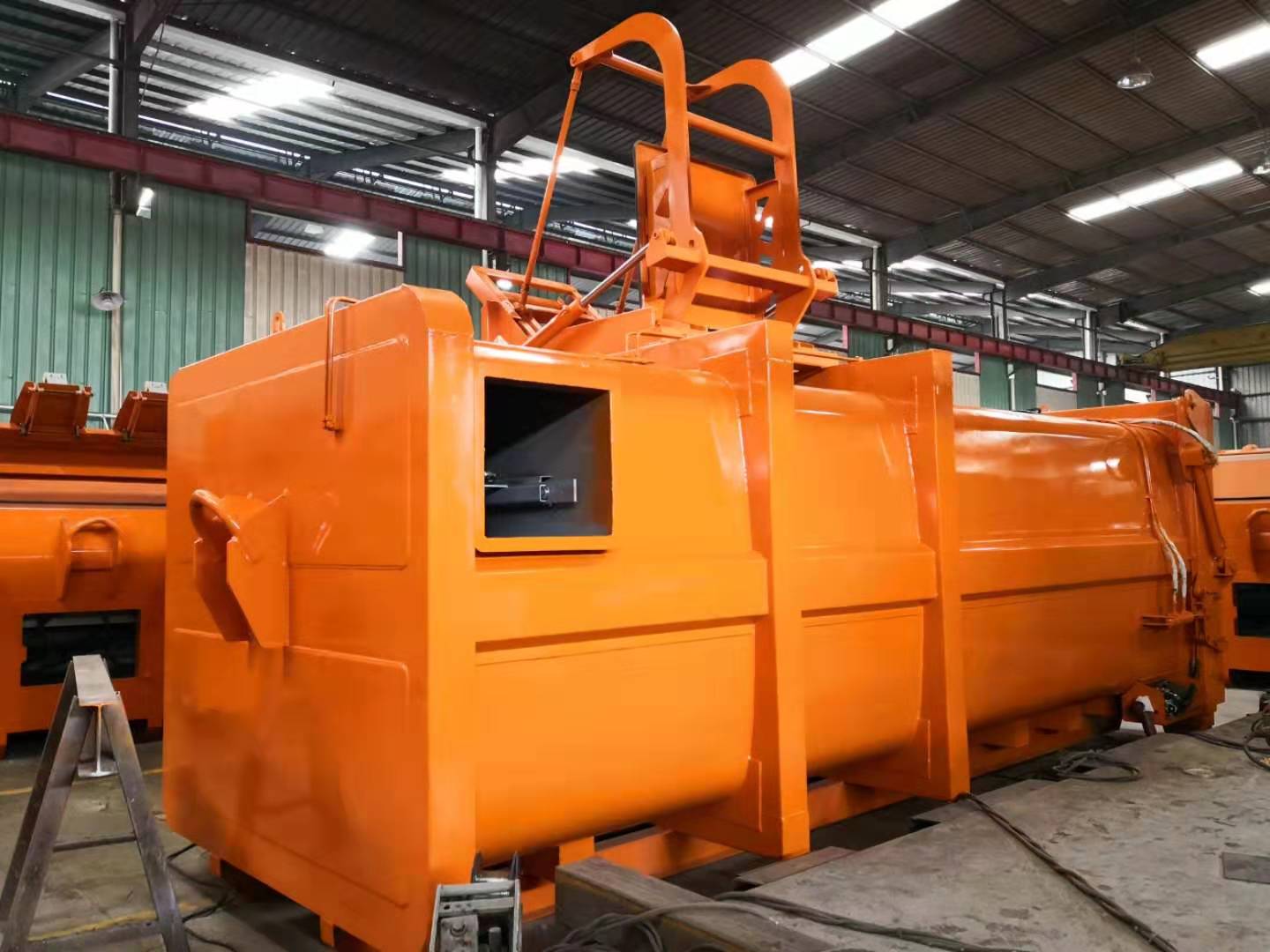 达成餐厨垃圾压缩站的垃圾箱装载容积有8-30m³多款可选,也可根据需求尺寸进行定制;日处理能力超20吨, 采用一体化的PLC控制器和人机可视化界面控制,调控和维护方便可靠,密封性能好,底部设有污水接纳箱,作 业全程不会有垃圾和气味溢出。