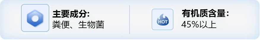 有机质含量: ≥45% 氮磷钾含量: ≥5% 水分: ≤20% 微生物活菌: ≥0.2亿